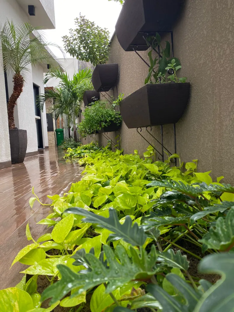 A presença de plantas e flores contribui para a melhoria da qualidade do ar, promovendo um ambiente mais saudável e agradável para todos.